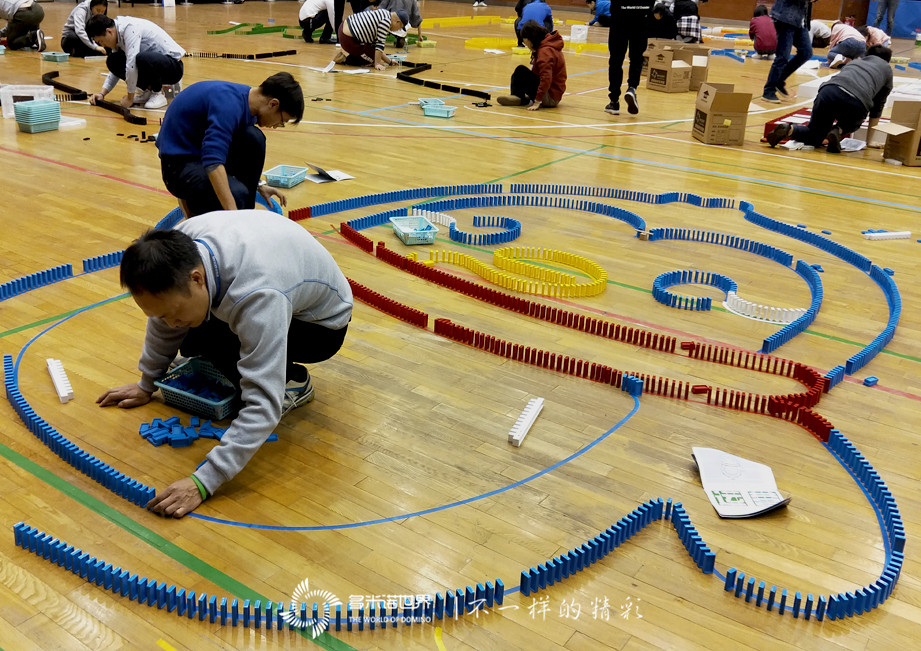 在所有伙伴的共同努力下,一幅幅骨牌圖案成功碼放,雖然過程中不免失誤,場地上也會斷斷續(xù)續(xù)地轉(zhuǎn)來骨牌傾倒的聲音,但失敗挫折卻讓大家更加團(tuán)結(jié),共同迎接困難挑戰(zhàn),將小伙伴們的心緊緊貼在一起。