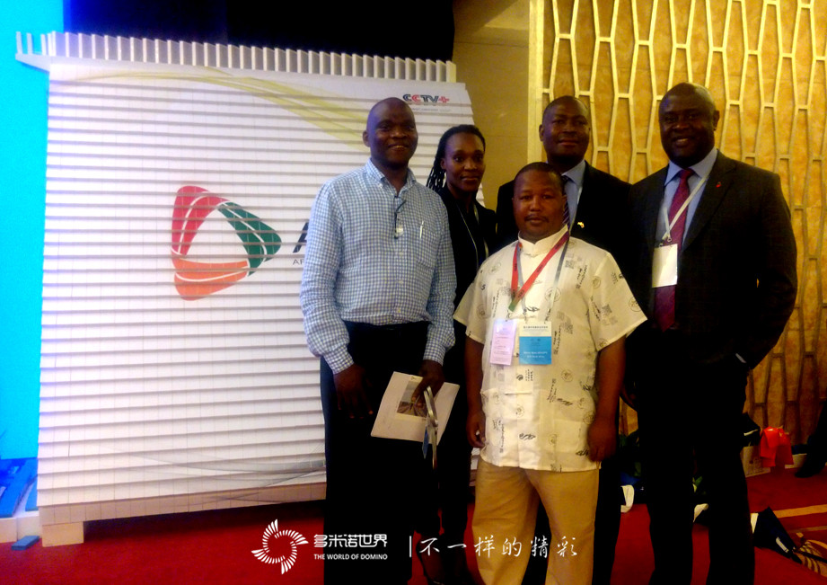 論壇期間,中非雙方達(dá)成了15項(xiàng)媒體合作成果,現(xiàn)場(chǎng)見(jiàn)證了其中11項(xiàng)協(xié)議的簽署,而中央電視臺(tái)與非洲各國(guó)媒體共同組建的“非洲視頻媒體聯(lián)盟”多米諾啟動(dòng)儀式,成為了會(huì)場(chǎng)的最亮點(diǎn)。為保證活動(dòng)效果,主辦方特別邀請(qǐng)多米諾世界團(tuán)隊(duì)設(shè)計(jì)搭建立體多米諾骨牌陣,當(dāng)幾位嘉賓共同將啟動(dòng)板插入啟動(dòng)臺(tái),骨牌啟動(dòng)、飛奔向前,揭開(kāi)了“非洲視頻媒體聯(lián)盟”的神秘面紗,聯(lián)盟LOGO瞬間展現(xiàn)在大家面前,現(xiàn)場(chǎng)掌聲雷動(dòng),眾多嘉賓來(lái)到立體骨牌陣前合影留念。