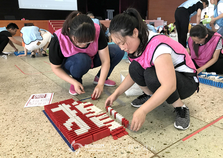 2017年6月20、21日,兩天的訓(xùn)練營(yíng),分別有兩支隊(duì)伍、120位富士康人參加,在“擼起袖子加油干”的主題下,大家齊心協(xié)力,擼起袖子碼骨牌。所有隊(duì)員認(rèn)真、投入,用匠心碼放每一枚骨牌、實(shí)現(xiàn)每一個(gè)多米諾創(chuàng)意。