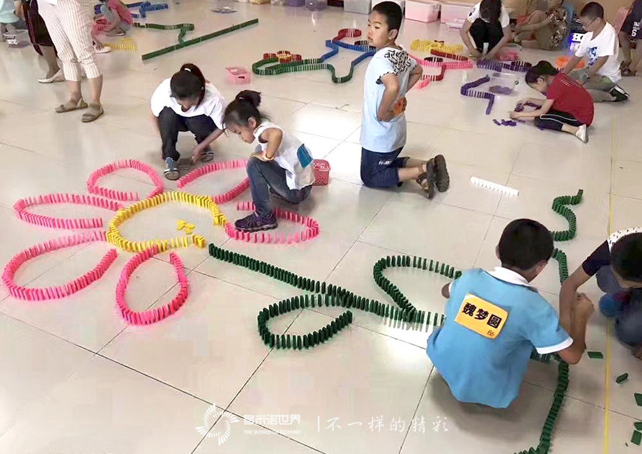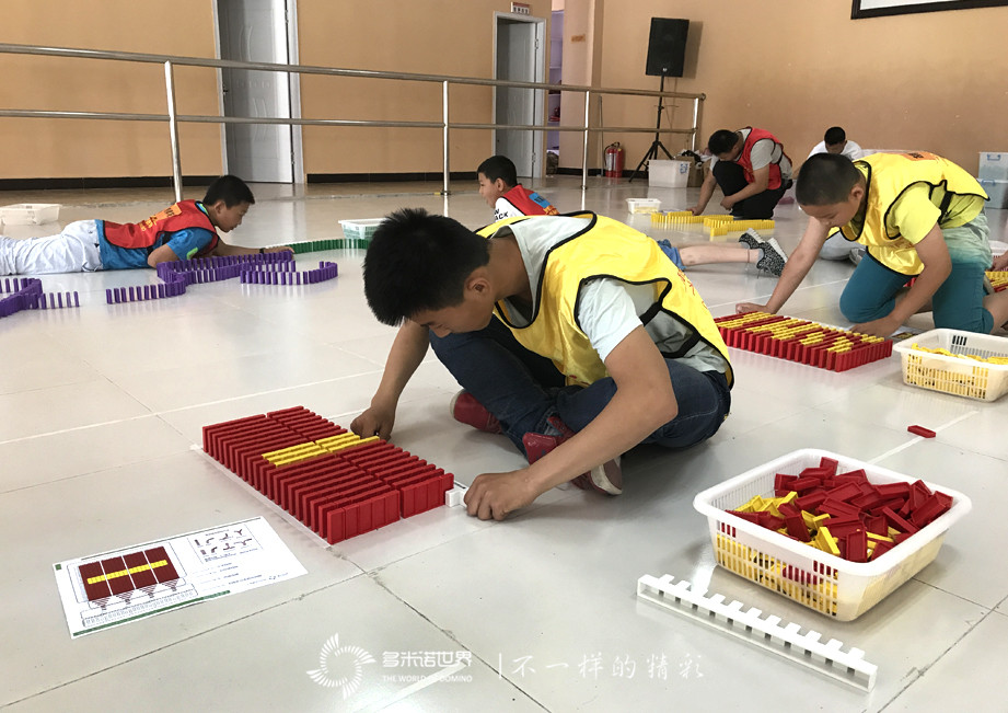 8-11歲的少年朋友參加創(chuàng)意大挑戰(zhàn)的比賽項目。本次的比賽主題是:各族兒童慶六一,每支參賽隊都要創(chuàng)意碼放一幅與比賽戰(zhàn),主題相關(guān)的多米諾圖案。雖然都是第一次參加多米諾比賽,卻并沒有緊張與膽怯,而是將心中最美的畫面,用五顏六色的骨牌堆砌展現(xiàn)出來。一幅幅大相徑庭的多米諾畫卷,同樣述說著各族兒童心中對于六一的美好憧憬。