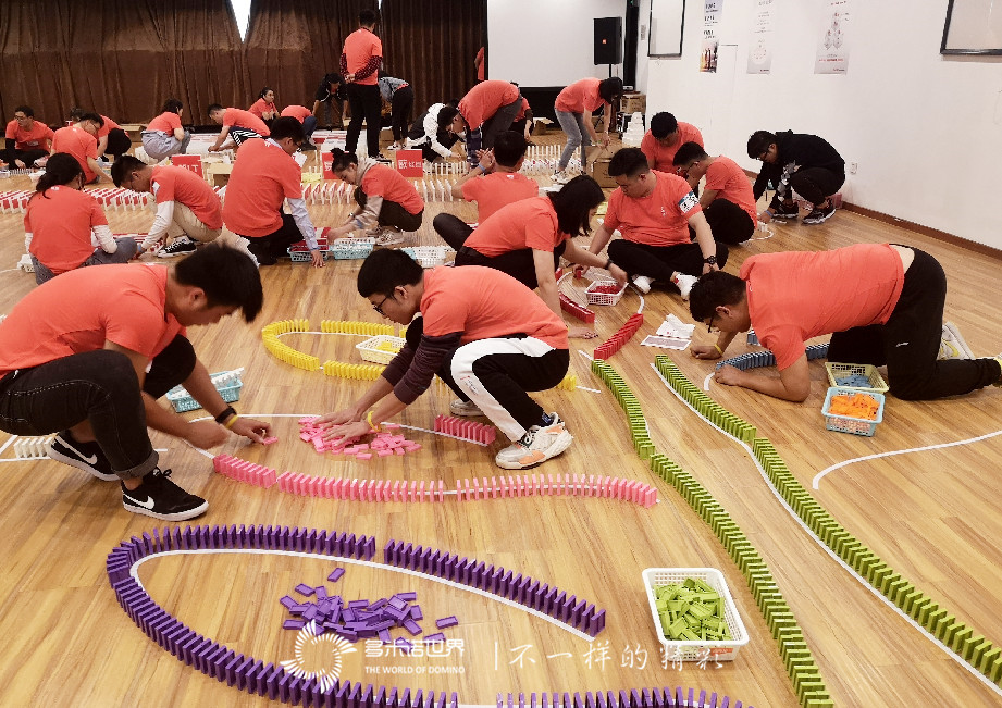 在開(kāi)場(chǎng)環(huán)節(jié)向同學(xué)們介紹了我們這個(gè)“多米諾世界”,大家對(duì)這個(gè)堅(jiān)持多米諾運(yùn)動(dòng)二十年,榮獲十項(xiàng)世界紀(jì)錄,創(chuàng)造六項(xiàng)“吉尼斯”的團(tuán)隊(duì)給大家?guī)?lái)的挑戰(zhàn)充滿了期待。一個(gè)“多米諾效應(yīng)”的實(shí)驗(yàn),讓這群社會(huì)精英深刻的記住了一個(gè)道理,“堅(jiān)持的意義是成長(zhǎng),成長(zhǎng)的過(guò)程需要積累”,每天成長(zhǎng)一點(diǎn)點(diǎn),每天進(jìn)步一點(diǎn)點(diǎn),注定會(huì)成就一個(gè)不平凡的人生。
