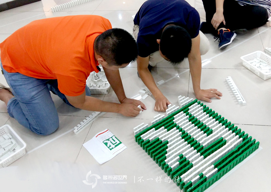雖然學(xué)員們在過程中努力按照多米諾專業(yè)老師的要求,完成每一個(gè)環(huán)節(jié),但還是不免出現(xiàn)失誤,而當(dāng)所有骨牌即將碼放完成,最后收尾環(huán)節(jié)時(shí),又有畫面意外倒地,令原本馬上就要品嘗到成功喜悅的學(xué)員們一下子又緊張起來,但大家并沒有氣餒,而是再一次“從頭再來”,學(xué)員們合作配合,最終一幅完整的多米諾作品展現(xiàn)在大家面前。