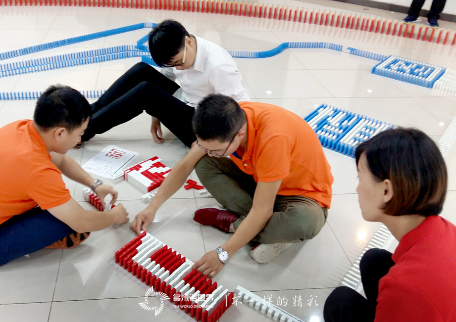 一個(gè)晚上,三個(gè)小時(shí)的時(shí)間,學(xué)員們認(rèn)識(shí)了多米諾運(yùn)動(dòng),學(xué)習(xí)了多米諾專業(yè)知識(shí),體驗(yàn)了挑戰(zhàn)極限的多米諾游戲,還共同完成了一幅以“只為成就你的藍(lán)圖”為主題的多米諾畫卷,過程中既有笑聲,也有汗水。