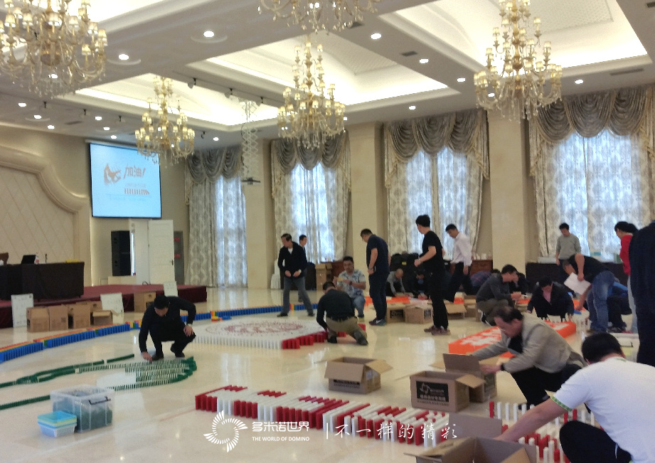 當(dāng)多米諾世界教練對于本次活動及多米諾骨牌擺放方法做了詳細(xì)講解之后,被隨機分成四組的嘉賓順序進(jìn)入場地,開始進(jìn)行多米諾骨牌擺放。