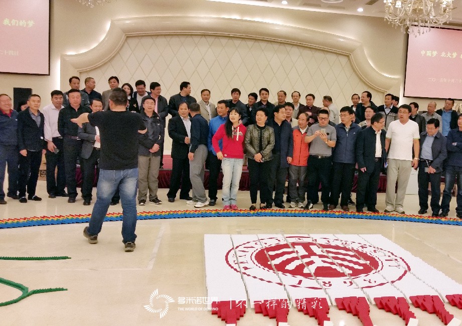 2015年10月24日,為期兩年的“中國夢”文化經(jīng)濟(jì)研討成功落下帷幕。主辦方特別邀請多米諾世界團(tuán)隊,策劃設(shè)計了一場以“中國夢、北大夢、我的夢”為主題的多米諾團(tuán)隊活動,將參加研討的近百位參與研討的嘉賓齊聚靜之湖,一同用多米諾骨牌擺放心中的中國夢。