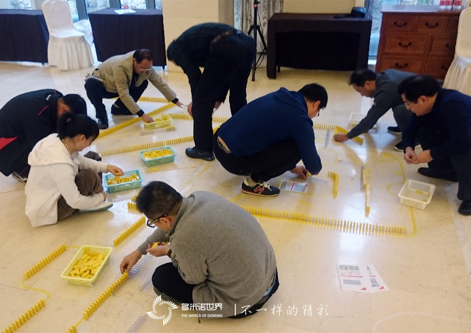 初次接觸多米諾,不免出現(xiàn)意外,沒有預(yù)兆的倒牌聲音在現(xiàn)場此起彼伏。看著剛剛擺放完成的成果瞬間消失,大家并沒有氣餒,而是迎難而上,越戰(zhàn)越勇,直至所有骨牌擺放完成,臉上才露出了孩子般的笑容。