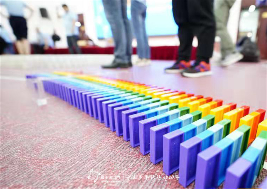 2021年9月4日,50位雙鶴風(fēng)華計(jì)劃的伙伴相聚懷柔,共同迎來多米諾骨牌團(tuán)隊(duì)大挑戰(zhàn)。在多米諾世界老師的講解后,大家開始分組行動,繪制畫面,搭建文字,機(jī)關(guān)組裝和調(diào)試,每一個(gè)任務(wù)內(nèi)容都在有條不紊地進(jìn)行著,最終經(jīng)過兩個(gè)小時(shí)的搭建,骨牌畫卷順利完成。在大家的共同倒計(jì)時(shí)聲中,小球成功落入軌道,觸發(fā)骨牌一路前行,經(jīng)過一幅幅多米諾骨牌搭建出來的畫面,和一個(gè)個(gè)隊(duì)員們零件創(chuàng)造的機(jī)關(guān)裝置,最終成功展現(xiàn)雙鶴藥業(yè)標(biāo)識畫面,多米諾團(tuán)隊(duì)大挑戰(zhàn)獲得百分百成功。