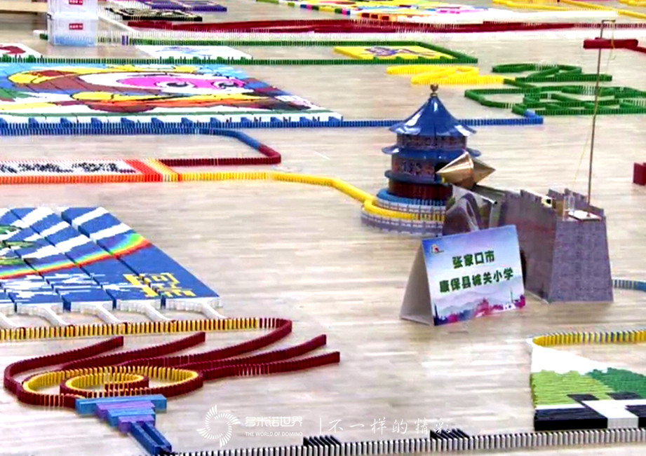 本年度的迎冬奧青少年多米諾大賽共有來(lái)自北京、張家口共23所學(xué)校的代表隊(duì)參賽,參賽學(xué)生人數(shù)共計(jì)184人。他們自11月16日一早開(kāi)始在北京市昌平體育館集中擺放骨牌,經(jīng)歷兩天時(shí)間在11月17日晚最終完成骨牌擺放。每個(gè)參賽隊(duì)都圍繞“我心中的冬奧吉祥物”進(jìn)行了主題設(shè)計(jì)。參賽的作品伴隨著迎接冬奧的腳步,融合奧運(yùn)元素、科技元素、文化元素,用多米諾骨牌的形式向人們展示著奧運(yùn)的魅力。最終昌平區(qū)實(shí)驗(yàn)中學(xué)小學(xué)部、昌平區(qū)十三陵中心小學(xué)、昌平區(qū)南口鐵道北中學(xué)、昌平第一中學(xué)天通苑校區(qū)、張家口市康??h城關(guān)小學(xué)獲得金獎(jiǎng)。