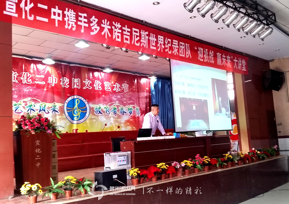 2016年4月15日,多米諾世界的“迎挑戰(zhàn)、贏未來”大講堂在宣化二中開講。
