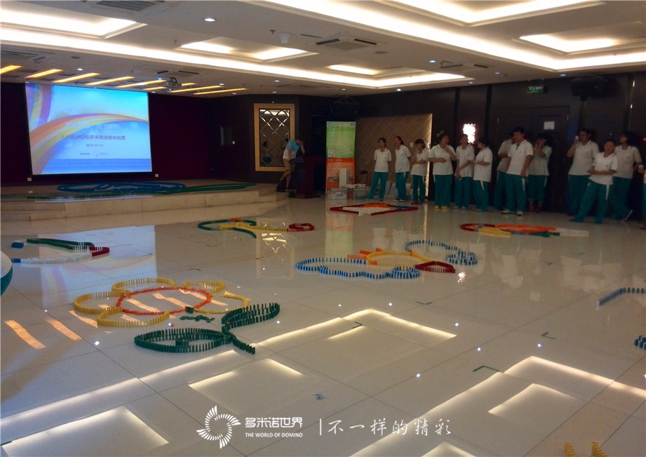 2014年7月21日,80余名人大附中學(xué)生干部來到風(fēng)景秀麗的十渡風(fēng)景區(qū),參加一年一度的夏令營活動。今年的夏令營,老師特別邀請了“多米諾世界”團隊,為同學(xué)們帶來了多米諾挑戰(zhàn)活動。大家在3個小時的時間里,充分體驗到了多米諾的無窮樂趣,了解了多米諾文化,并通過團隊的智慧和努力,創(chuàng)意出一幅幅精彩的多米諾作品。